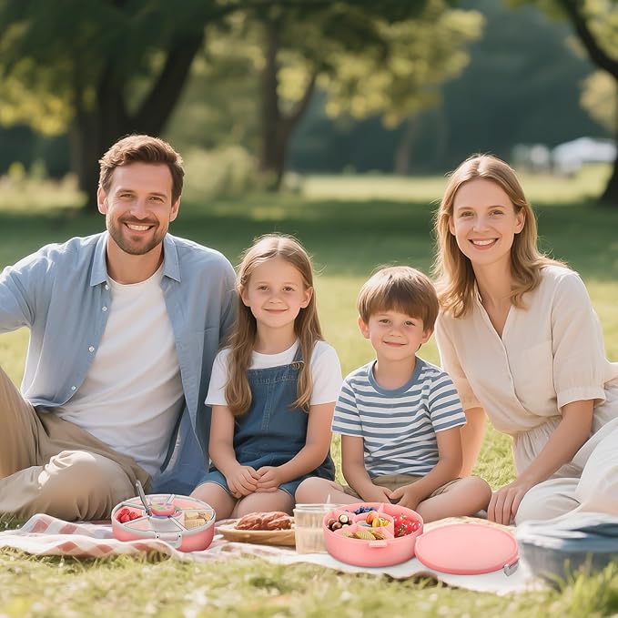 - Keep Snacks Organized — With 5 perfectly sized compartments, this container holds a variety of snacks like fruits, nuts, Cheerios, pretzels, and Goldfish. A removable divider allows extra space for longer or larger items. Keep everything fresh, neat, and ready for any occasion—whether it’s school, travel, or a day at the park.