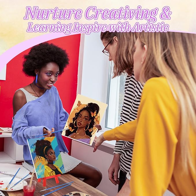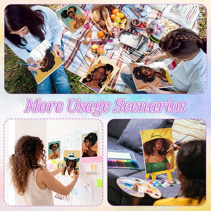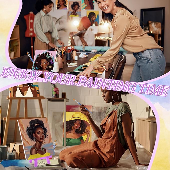 - 10 Pre Printed Canvases: 10 kinds of black women patterns are engraved on the pre drawn board; Include African women and other patterns, the size of: 7 x 5 x 0.1inch/18 x 13 x 0.3cm, cute and easy, you can use the provided paint to color according to your own aesthetics, improve your painting creativity in the process, and also reduce stress and relieve anxiety