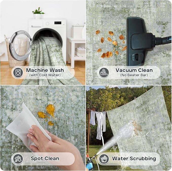 - Easy Maintenance: Keep your space fresh and clean with minimal effort. Our modern 6x9 area rugs are machine washable, spot-cleanable, and vacuum-friendly, making maintenance a breeze. Use a low-power vacuum regularly to remove dust or pet hair for everyday care. Avoid using bleach for best results