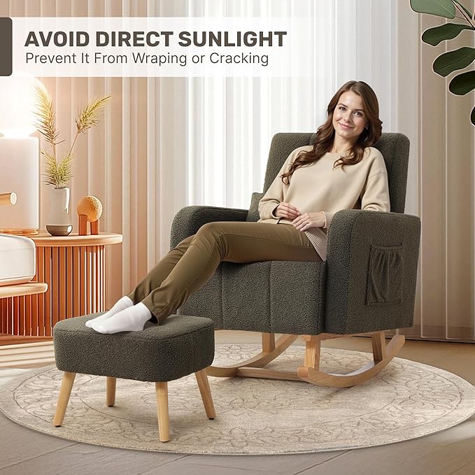 - DURABLE & EASY MAINTENANCE: Made from high-quality teddy, this rocker chair boasts excellent breathability and is resistant to wear and pilling, providing long-lasting durability. The wrinkle-resistant surface makes cleaning a breeze, so you can relax and enjoy your chair without any hassle