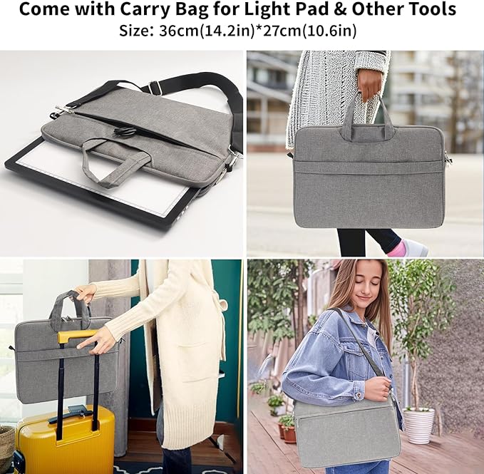 - 【 A4 Super Bright Light Pad with Carry Bag 】 The carrying bag is padded and lined with soft anti-scratch fabric, which helps to keep the screen protected and make it more durable. It also comes with a shoulder strap to carry the bag. It’s perfect for the amazing gift for Children's Day, Christmas, birthdays or any other holidays.