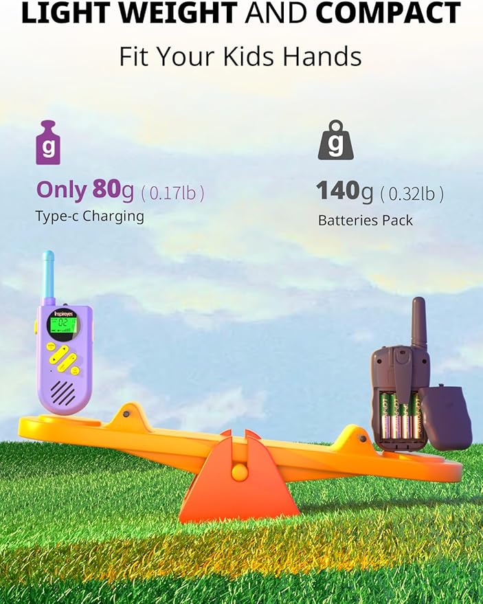 - Type-C Rechargeable, Long-lasting. Rechargeable walkie talkies feature an upgraded built-in lithium polymer battery, no need to pay for AAA batteries anymore, long play time, up to 48 hours working time, 7 days standby.