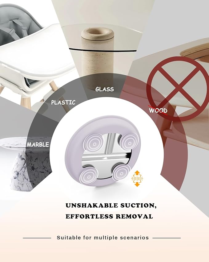 - Innovative Design: This baby plate with suction combines durable 304 stainless steel with a silicone suction base featuring 4 strong, non-slip suction cups. Keeps plates in place on highchair trays or tables, helping your child self-feed and minimizing mealtime mess. Say goodbye to flipped toddler plates and hello to free hands for mom!