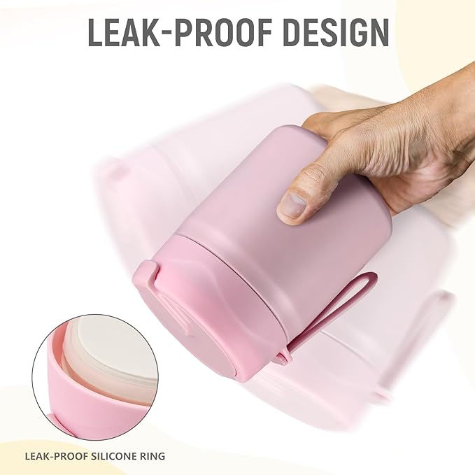 - 17oz Leak-proof thermo for hot food: Our insulated food jar has a 17oz capacity for holding as much food as you want, the insulated food canister is designed with a safety sealing lid to prevent liquids from leaking.