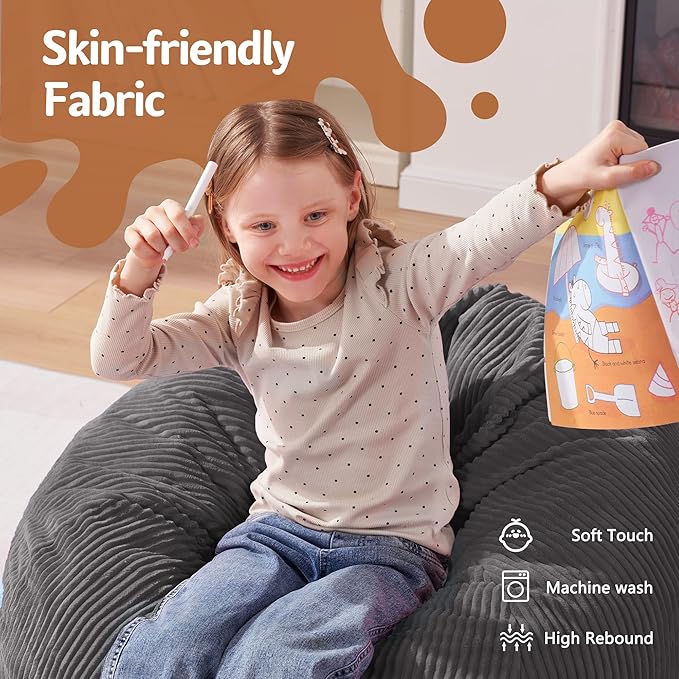 - Removable and Washable Cover: The cover of bean bag chair is removable and washable for further care. It is made of breathable premium dutch velvet with fine texture, soft and skin-friendly from touching. It is also anti-pilling and not easy to fade. You can easily put the beanbag cover into washer to clean it like new. Moreover its double stitched seams and hidden double-pull zipper ensures for super durability & strength.