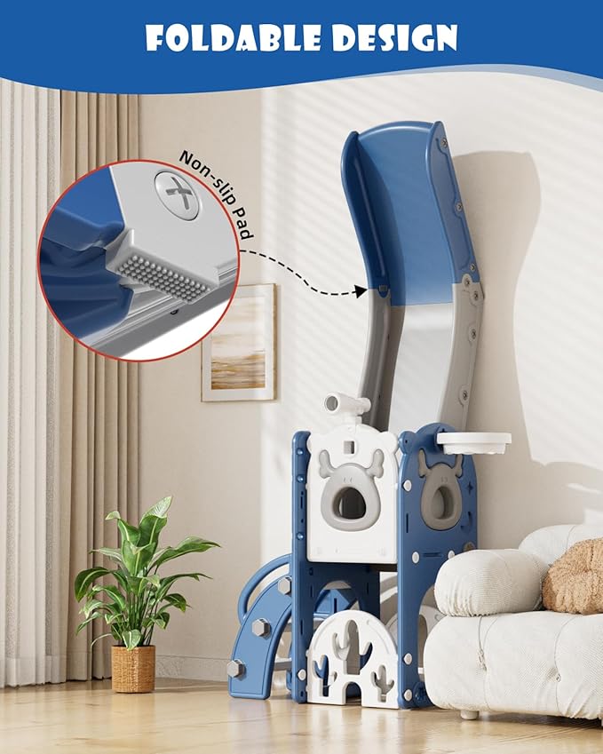 XJD 7 in 1 Toddler Slide, Kids Indoor Slide for Toddlers 12 to 36 Months, New Upgrade with Golf, Basketball Hoop for Indoor Outdoor Playset,Toddler Playground (Blue Gley)