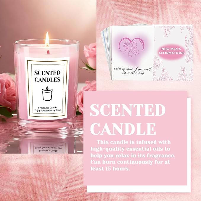 - UNIQUE NEW MOM GIFT BASKET: Pregnancy is a happy and tiring thing. The pink silk eye mask included in the gift box can bring her a better sleep. The scented candle is added with high-quality essential oils, exuding the scent of roses, which can soothe her tense nerves. Soft coral fleece socks bring warmth. The pure cotton swaddle can be used as a stroller cover, shawl, scarf, breastfeeding wrap and diaper pad, which is a practical tool to help her take care of the baby