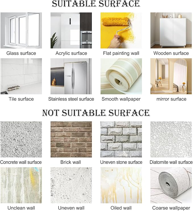 - 【Size & Package】: Comes in 2 sheets and rolled in the package, sheet size: 11.8" x 35.4"(30 x 90cm). Recommend finished size: 43" x 43"(110 x 110cm). ★ Please flatten the rolled stickers with weight before applying. To avoid peeling off, use a scraper to smooth and firm the sticker against the wall.