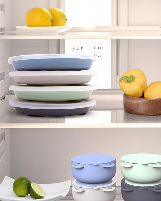 - Mess-Free Storage for Busy Parents: The soft silicone lid keeps food covered for travel or fridge storage. It's not leakproof, but it keeps smells contained and lets you stack meals easily—great for families with more than one hungry kid. Optimized wall height guides utensils to mouths successfully, boosting independent eating confidence with our stainless steel plates