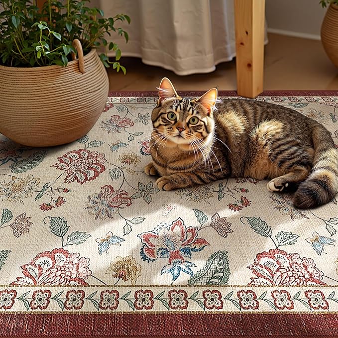- Freshen Entryway & Kitchen: Perfectly sized to welcome guests at doorway or brighten cozy kitchen corner, this compact rug brings vintage floral charm without adding bulk. Its slim, easy-care design fits snugly in busy spots, making everyday life a little more stylish and effortless.