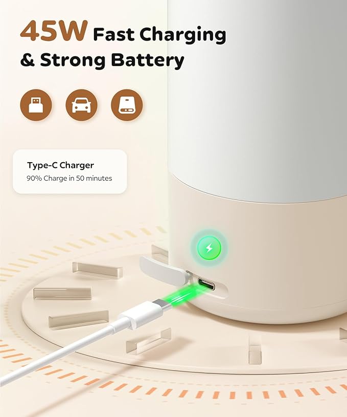 Efficient Charging: Featuring a high-speed charging adapter, the portable milk warmer reaches 90% charge in under an hour, offering reliable performance for extended outdoor use
