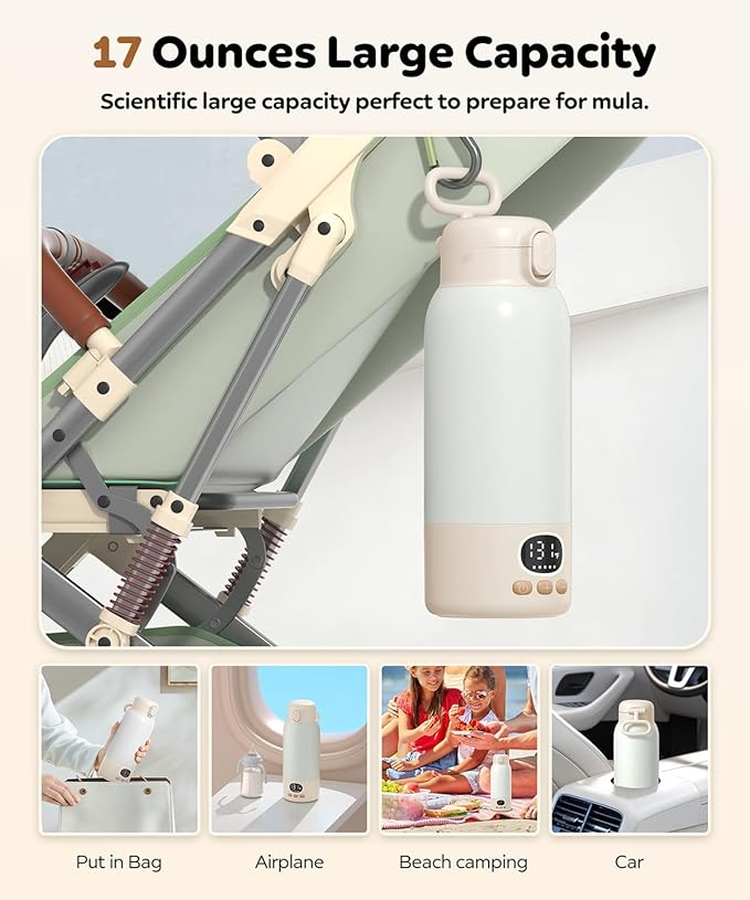 17-Ounce Generous Capacity: The bottle warmer is designed to accommodate larger quantities, making it ideal for warming breast milk, formula, or baby food whether you're at home or on the go