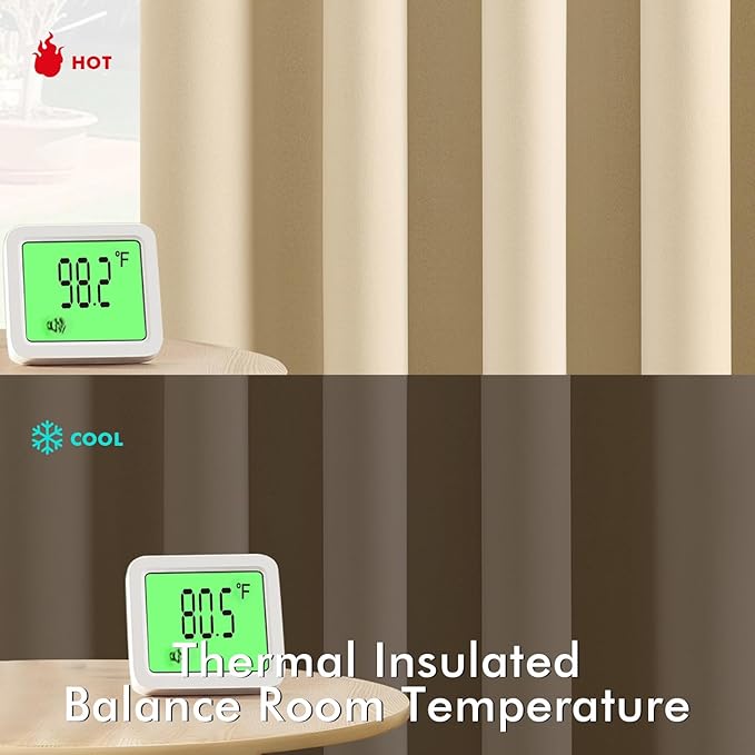 - High-Quality Material: Crafted from high-quality 225GSM polyester fabric, these curtains offer enhanced durability and elegant drape. The soft blackout material features triple-layer weaving technology, with a middle layer of black yarn for superior light blocking and privacy. Both sides feature the same refined color, ensuring a seamless look that elevates your homeβs aesthetic with understated sophistication