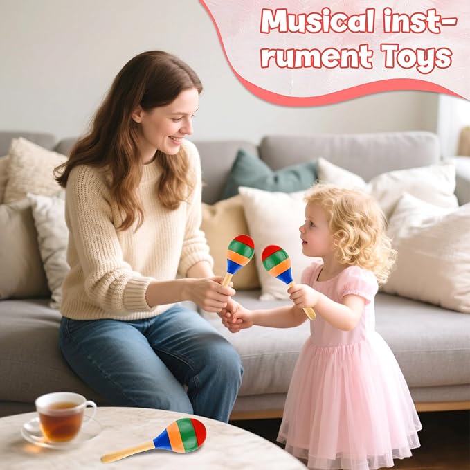 Kid-Safe Musical: 4 pcs maracas for kids adults. Starter wooden maracas for kids feature smooth. Perfect grip size helps toddlers develop motor skills while exploring rhythms