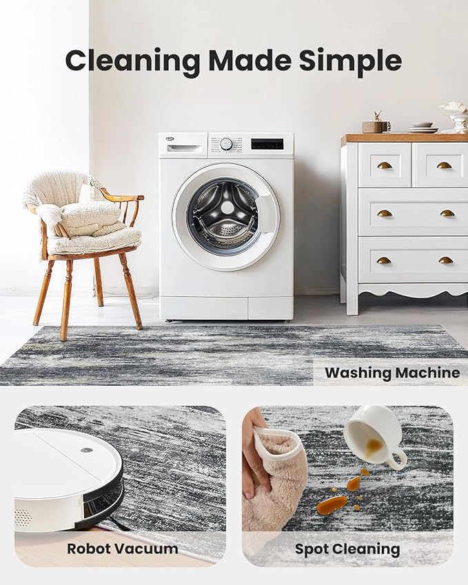 - 【Durable and Easy to Clean】This living room rug features a 0.24″ low-pile design with double-stitched edges for durability and easy maintenance. It’s easy to clean with a standard vacuum or robotic vacuum. For a deeper clean, this rug is machine washable. Ideal for high-traffic areas.