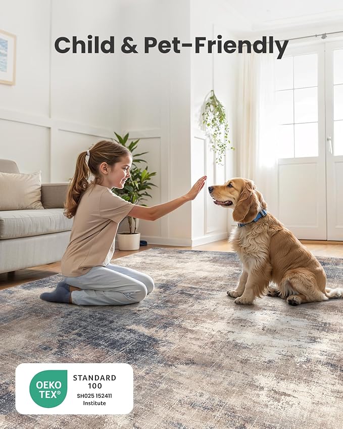 - 【OEKO-TEX Certified Quality】This washable area rug 8x10 is crafted from OEKO-TEX certified, skin-friendly materials, making it an ideal surface for children & pets. The soft feel provides a cozy barefoot experience all day long.