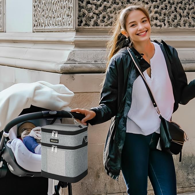 Mancro Breastmilk Cooler Bag with Ice Pack, insulated bottle bag for Daycare and Travel, Double Layer Baby Bottle Cooler Bag Fits 6 up to 9 Ounces for Nursing Moms, Light Grey