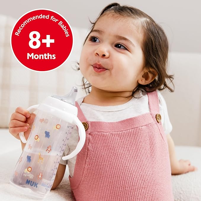 NUK Learner Cup, 8+ Months, Fun Fruits and Animals, Amazon Exclusive Collection, 10 Oz, Pack of 2, BPA-Free, Soft Spout, Spill Proof Sippy Cup