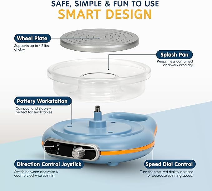 - LIGHTWEIGHT & EASY CLEAN : This portable tabletop pottery wheel is lightweight and easy to carry. Its removable turntable and splash guard allow quick, hassle-free cleaning after each use.