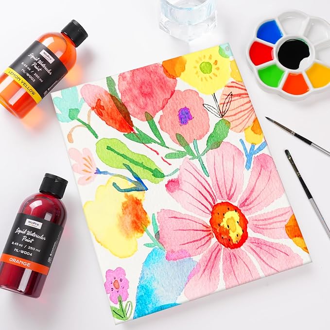- VIBRANT 12-COLOR ASSORTMENT: Discover Nicpro’s most popular liquid watercolor collection—12 brilliant colors (8.45 oz / 250 ml each). With rich, highly concentrated pigments, they can be used full-strength for bold results or diluted for soft, layered washes—perfect for elevating any art, craft, or school classroom project.