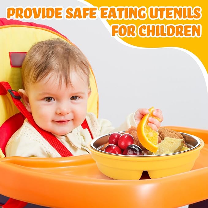 - Thoughtful Gift for New Parents: these stainless steel children plates with suction make an excellent gift for baby showers or birthdays; Parents will appreciate the practicality and safety of these baby self-feeding utensils; Give the gift of reliable, versatile tableware that supports baby-LED weaning and makes mealtime enjoyable for both parents and children