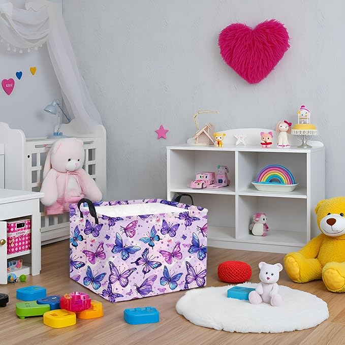 HIYAGON Rectangular Butterfly Basket Baby Storage Basket Storage Bin Organizer Box Room Decor(Purple Butterfly)