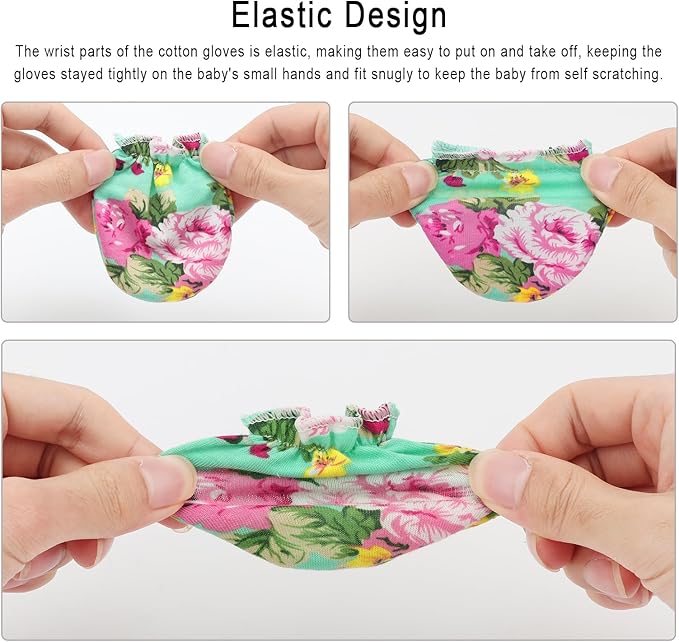 - THOUGHTFUL DESIGN: The wrist parts of the cotton gloves is elastic, making them easy to put on and take off, keeping the gloves stayed tightly on the baby's small hands and fit snugly to keep the baby from self scratching.