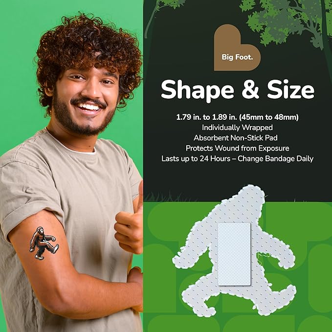 - EASY TO CARRY AND USE: These cute and colorful Bigfoot children's bandages are easy to take with you for travel, and easy to store in a home first aid kit; these healing bandages are perfect for school, summer camp, camping trips, weekend getaways and more