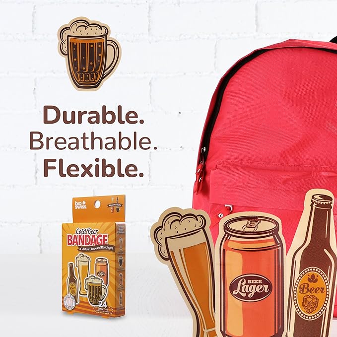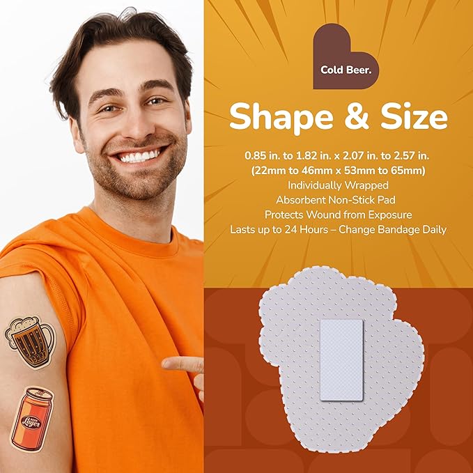 EASY TO CARRY AND USE: These colorful Cold Beer healing bandages are easy to take with you for travel, and easy to store in a home first aid kit