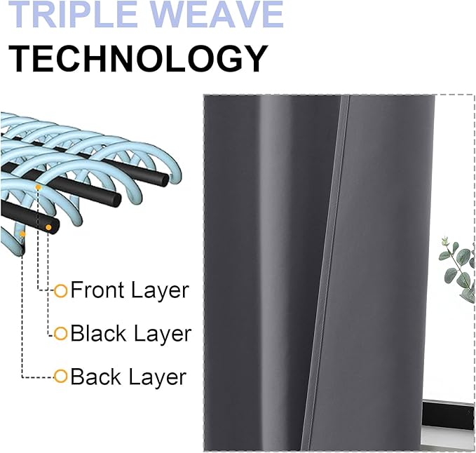 - Energy Saving: The triple-weave light-blocking fabric balances room temperature by blocking heat in summer and cold in winter. Protect your furniture, floors, and artworks from the damaging effects of sunlight, and let the grey curtains pay for themselves over time. They are perfect for living rooms, bedrooms, yards, patios, villas, parlors.