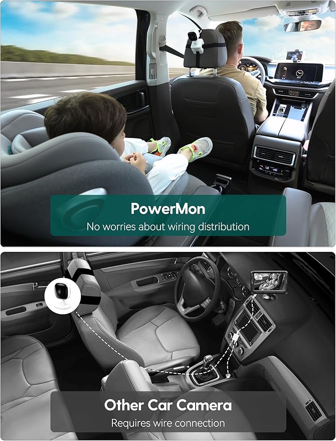 - Wire-Free & Long-Lasting: Say goodbye to messy in-car wiring! This baby monitor camera runs on a built-in battery, allowing hassle-free placement anywhere in your vehicle or home. With up to 8 hours of battery life on a single charge. No more tangled wires or outlet limitations—just flexible, uninterrupted monitoring that adapts to your lifestyle