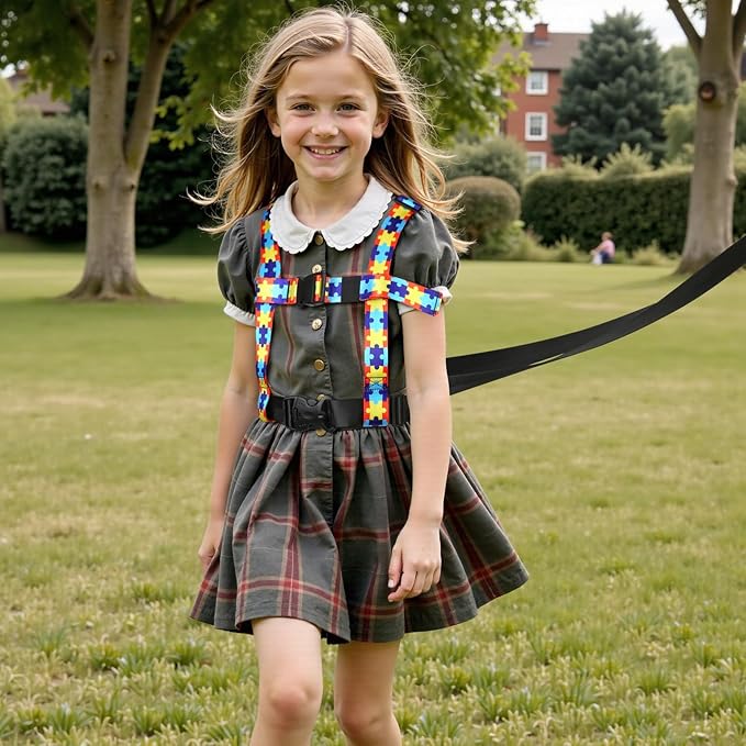 - Keep Security: This child safety harness is designed for active or autistic children, ensuring safety for outing, traveling, and adding peace of mind for guardians. The harness features a distinguishing autism awareness puzzle pattern, helping with easy recognition while increasing understanding and acceptance among people.