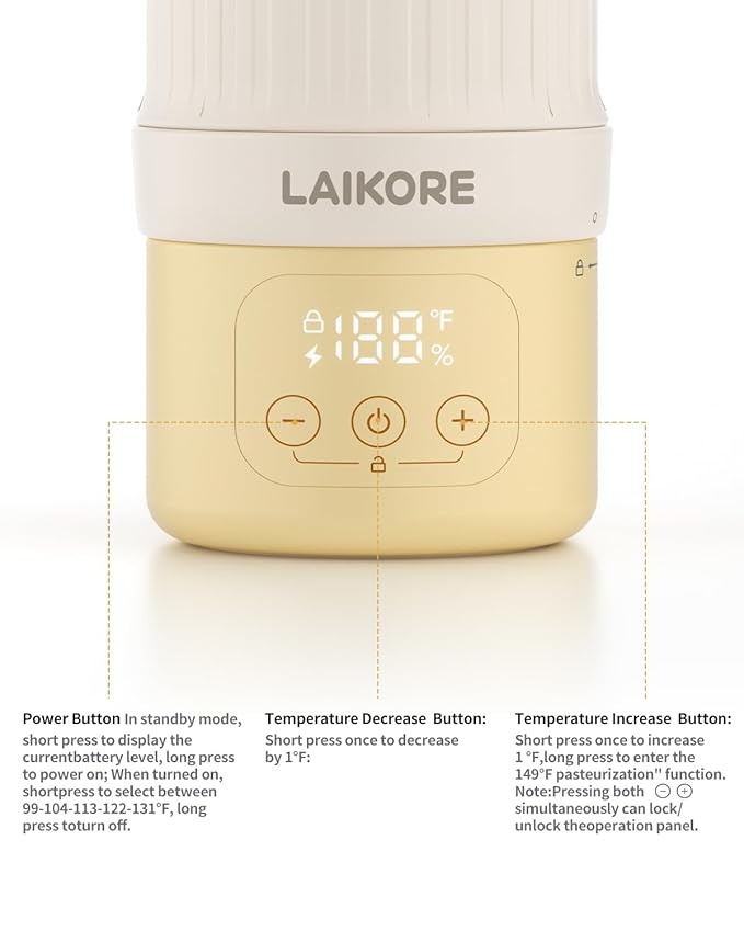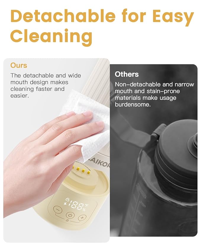 - 【Cordless & Rechargeable for Total Portability】This baby bottle warmer features a detachable 1000mAh battery, making it completely cordless and ideal for use anywhere—whether you're on a road trip, camping, or just out running errands.