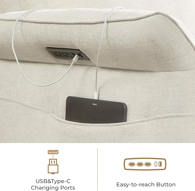 - Designed for Comfort & Care: This power glider transforms nursing, lounging, or napping into moments of ease. The outward-turned armrests create a snug, supportive space for breastfeeding or cradling your baby. Raise the padded footrest without reclining to elevate legs for pressure-free TV time. Independent power headrest and lumbar adjustments cradle your head, neck, and waist, alleviating spinal strain and easing lower back tension during extended sitting.