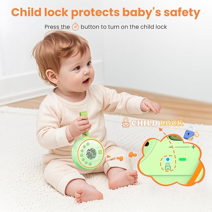 - Adjustable volume:You can set the volume to your favorite level. This baby sound machine is equipped with a safety child lock to prevent small hands from accidentally changing the volume, sound or light settings