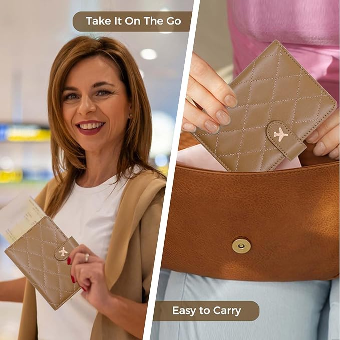 Melsbrinna Rfid Passport Holder for Travel women/Men, Cute Passport Wallet Rfid Blocking Card Slots, Rfid Passport Cover/CaseTravel Wallet, Passport Book Holder (1, LG KHAKI)