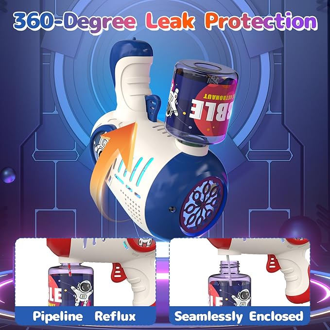 - MAGICAL LIGHT-UP DESIGN: Each bubble gun comes equipped with built-in LED lights, turning every bubble burst into a sparkling rainbow show. Watch your child's face light up as glowing bubbles fill the air—perfect for evening fun or festive celebrations