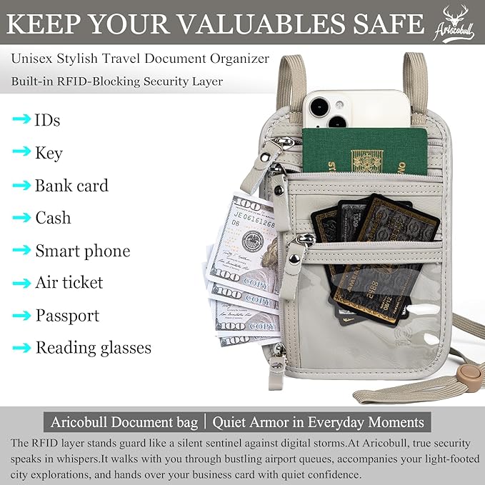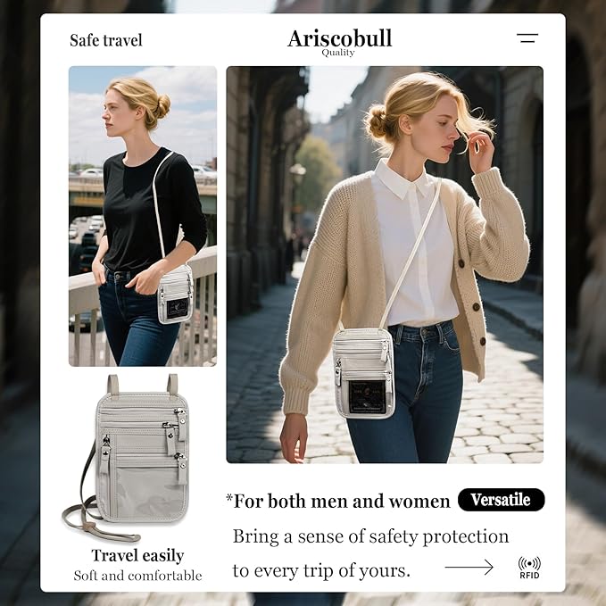 Discreet Anti-Theft Design – Our Ariscobull Neck Wallet Makes It Super Easy To Add Or Remove Items, Keep Valuables Hidden Under Clothing, Perfect For Travel And Crowded Areas.