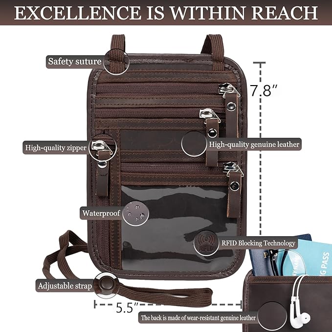 • Spacious And Organized – Size 7.8*5.5in, A Stylish, Easy-To-Use Design, That’S Comfortable And Lightweight. With Zippered Pockets, A Velcro Patch, And A Clear Id Window. Fits Passports & Large Smartphones, Cash, And Tickets.