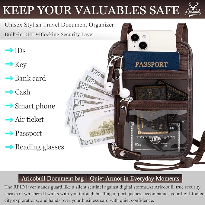 • Discreet Anti-Theft Design – Our Ariscobull Neck Wallet Makes It Super Easy To Add Or Remove Items, Keep Valuables Hidden Under Clothing, Perfect For Travel And Crowded Areas.
