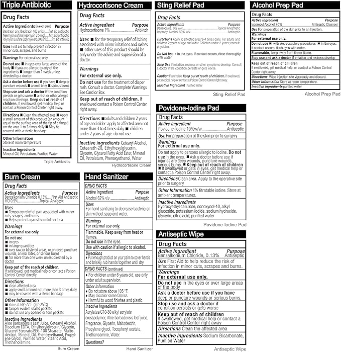 - Contents – Packed with 150 Pieces useful and valuable hospital grade first aid supplies - See the product images and the product description below for a full list of contents. We are confident that you will find that there are more and higher quality contents in our kits than any other on the market.