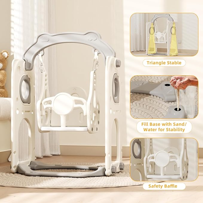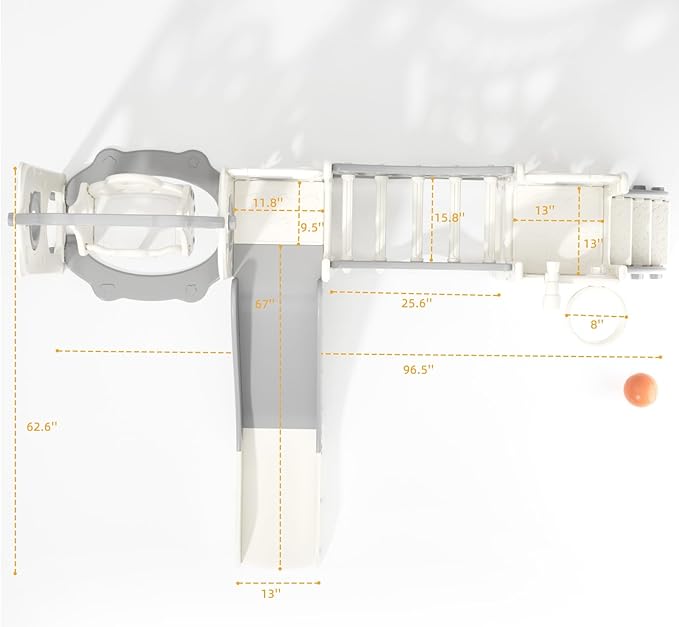 - 11-in-1 Play Features: Combines climbing bridge, slide, swing, basketball hoop, hide-and-seek hole, play telescope, golf set, ring toss, climber stair, wavy bottom and storage – fostering active play and creativity.