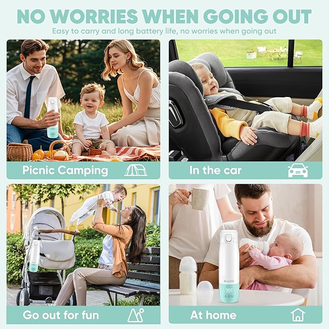 - 【3 Minutes Efficient Heating Technology】: Portable bottle warmer uses an advanced ceramic electric heating plate liner heating method to ensure that the heating process is safe and reliable. This portable baby bottle warmer uses advanced heating technology to quickly warm milk from room temperature to 98°F in just 3 minutes.