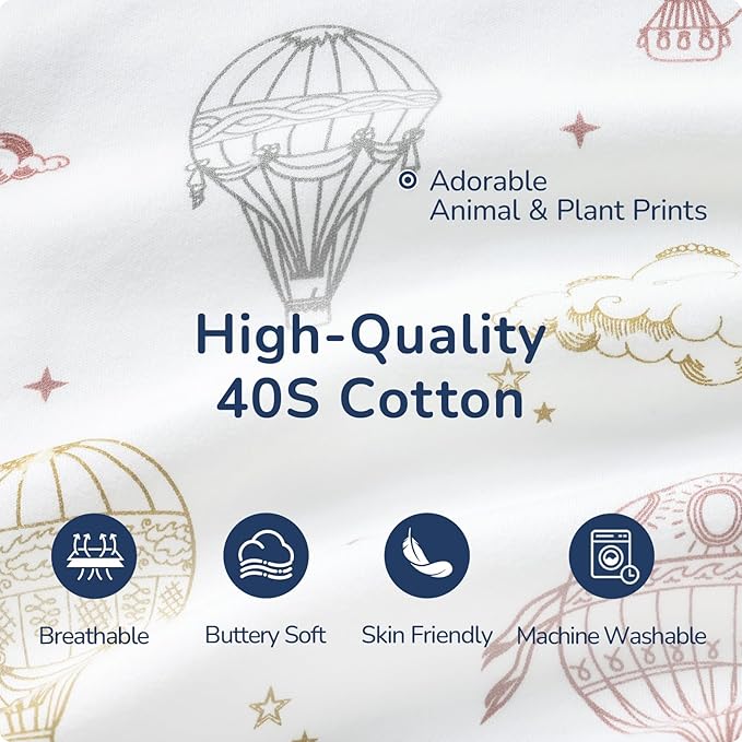 Baby Sleep Sack 3-6 Months, Cotton Detachable Long Sleeve Sleep Sack, 2.5 Tog Toddler Sleeping Sack with Temperature Strips, 2-Way Zipper Wearable Blankets for Newborns, Hot Air Balloon