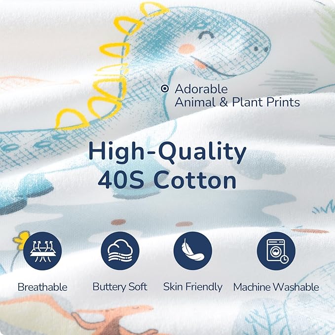 Baby Sleep Sack 6-12 Months, Cotton Detachable Long Sleeve Sleep Sack, 1.0 Tog Toddler Sleeping Sack with Temperature Strips, 2-Way Zipper Wearable Blankets for Newborns, Dinosaur