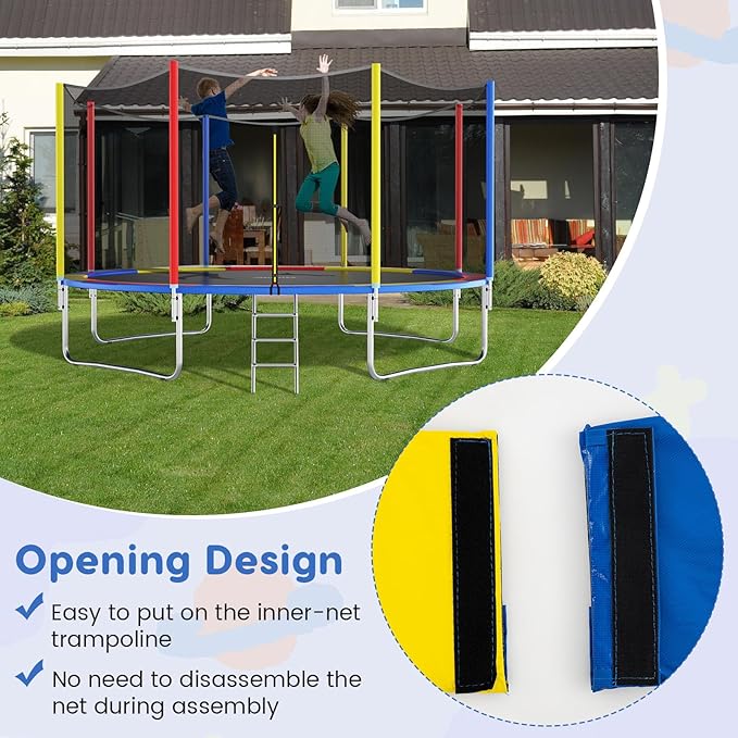 - [Easy & Quick Installation]: The opening design makes it easy to put this trampoline pad on the inner-net trampoline. There is no need to disassemble the net during assembly, saving time and effort.