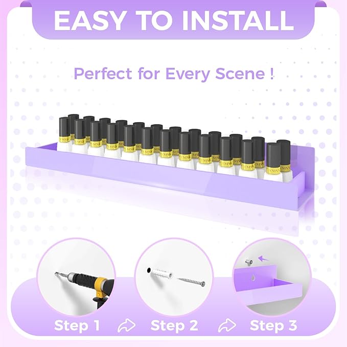- Elegant Wall Display: You can use RORKIM's purple acrylic shelves to spice up any corner of your home or studio and add an artistic touch to your walls