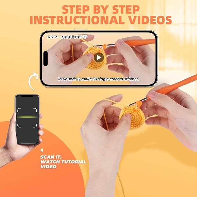 - 【3+ Hours of Video Tutorials】Simple, immersive, and beginner-friendly. Follow the entire plush crochet process with clear narration and expert guidance. Videos include chapter markers and playback speed controls to learn at your own pace. Ideal for first-time crocheters!