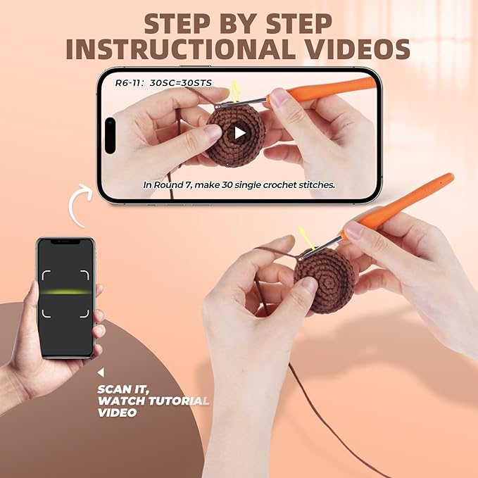 - 【3+ Hours of Video Tutorials】Simple, immersive, and beginner-friendly. Follow the entire plush crochet process with clear narration and expert guidance. Videos include chapter markers and playback speed controls to learn at your own pace. Ideal for first-time crocheters!