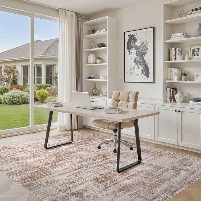 - Neutral Abstract Style: Elegant neutral design lets this rug integrate seamlessly into any space. It enhances room ambiance and adds refined elegance to your home. Perfect for living rooms, bedrooms, dining rooms, studies, offices, playrooms and nurseries
